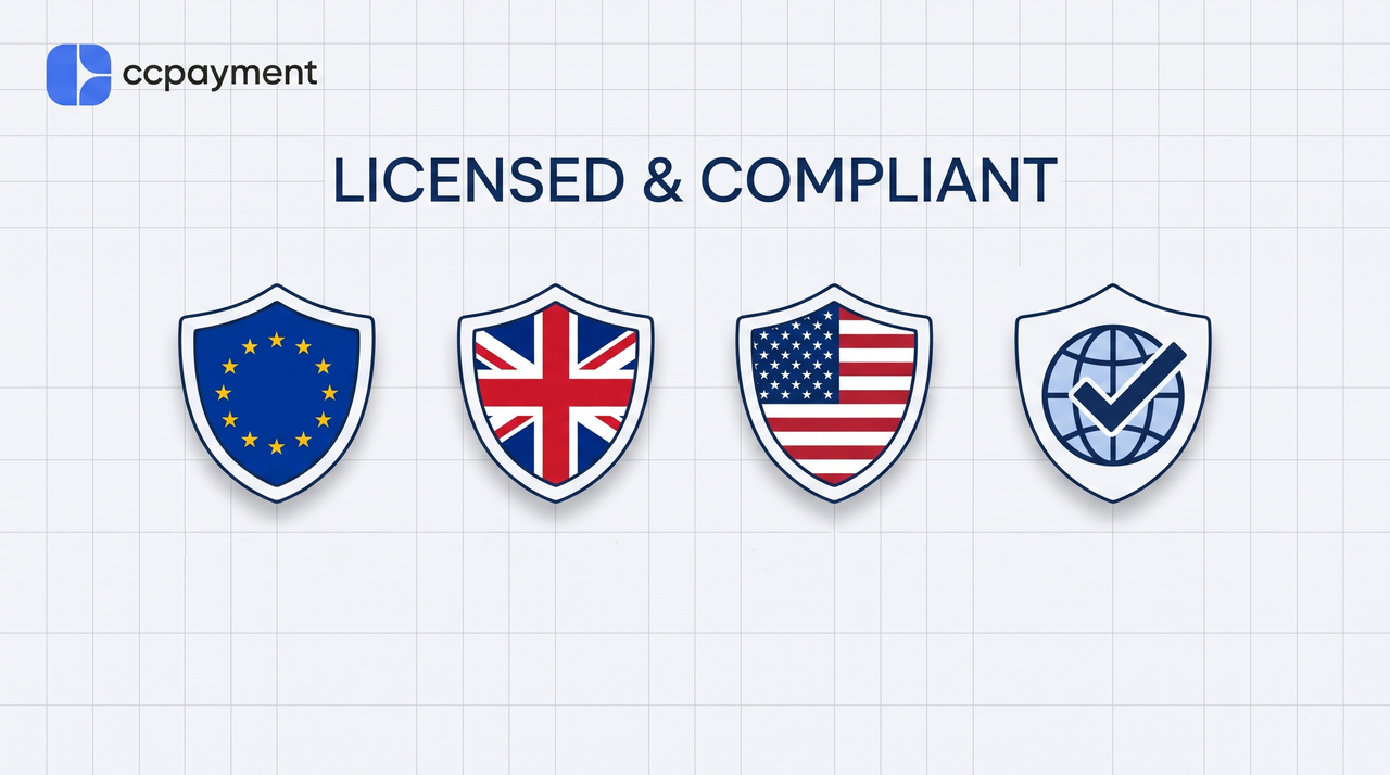 In the 2026 regulatory landscape, security and compliance are the lifelines of any enterprise. CCPayment is equipped with RSA encryption and multi-layer risk control technologies. We are committed to building a secure, compliant payment network with regulatory licenses in multiple regions to ensure legal compliance.